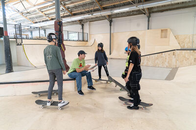 Geen eigen skateboard of bescherming? Geen probleem! Materiaal is te huur, en in onze skateshop vind je alles wat je nodig hebt: van helmen en beschermers tot complete skateboards.